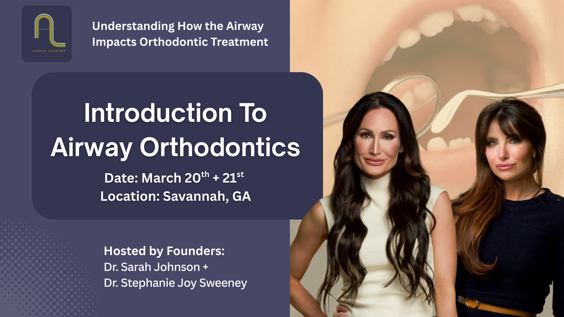 Join us in Savannah, Georgia March 20–21st, for a 2-day course in Airway and Functional Orthodontics